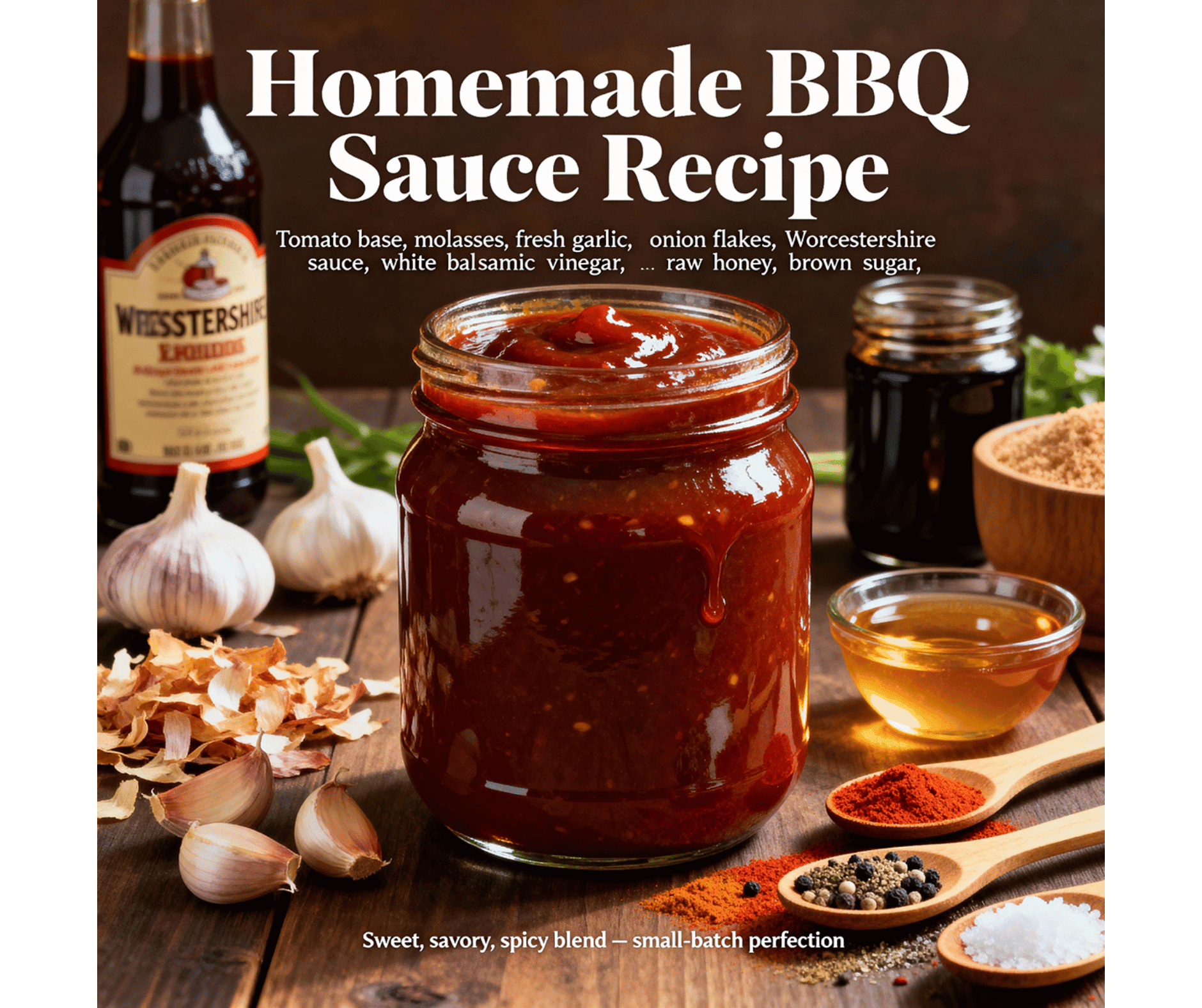 Our BBQ sauce incorporates a blend of white balsamic vinegar and honey for a distinct balance of tang and sweetness.